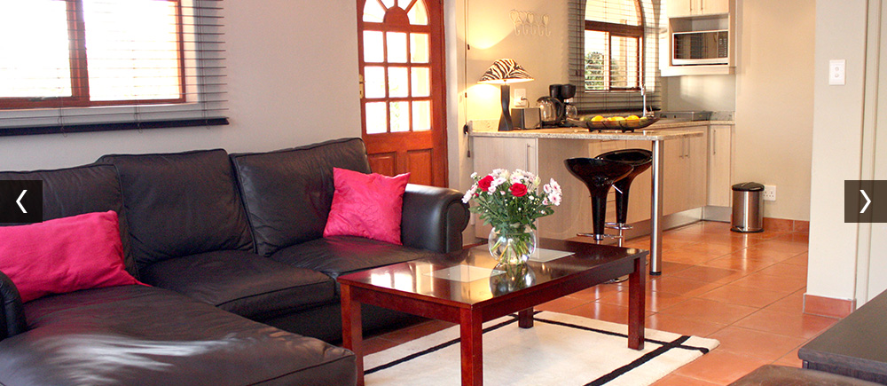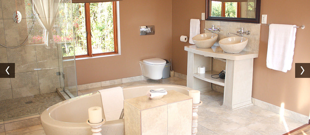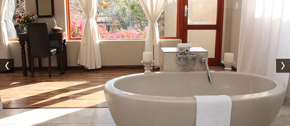 The cottage itself is modern and stylishly furnished, boasting a well equipped kitchen and a luxury living area with large flat screen TV with full DSTV bouquet on the ground floor. The air conditioned main bedroom (upstairs) has a spacious en-suite bathroom with a free standing stone bath tub, large shower, complete with heated towel rails.